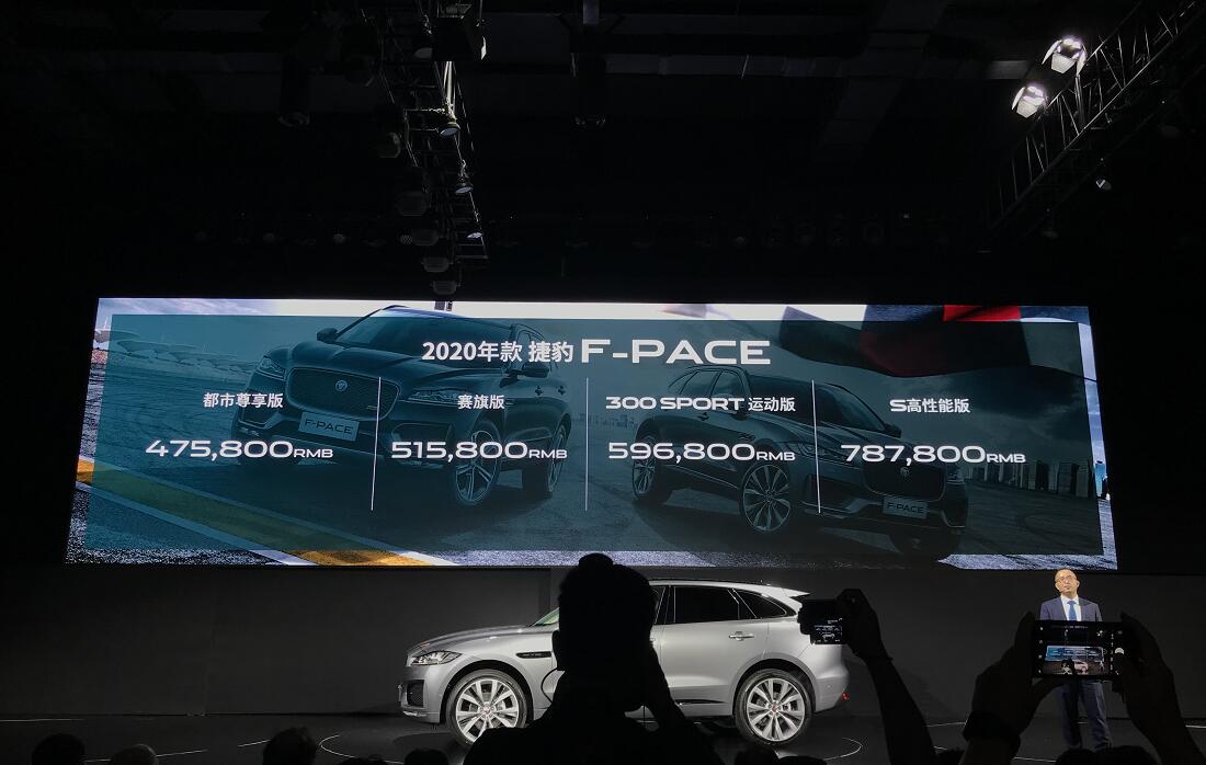 新款捷豹F-PACE (配置|询价)推出4款车型,其售价区间为47.58-78.78万元;2020款路虎揽胜 (配置|询价)运动版4款车型上市,售价区间为86.48-110.30万元;2020款揽胜SV系列车型上市,推3款新车,售价区间为183.80-321.30万元。
