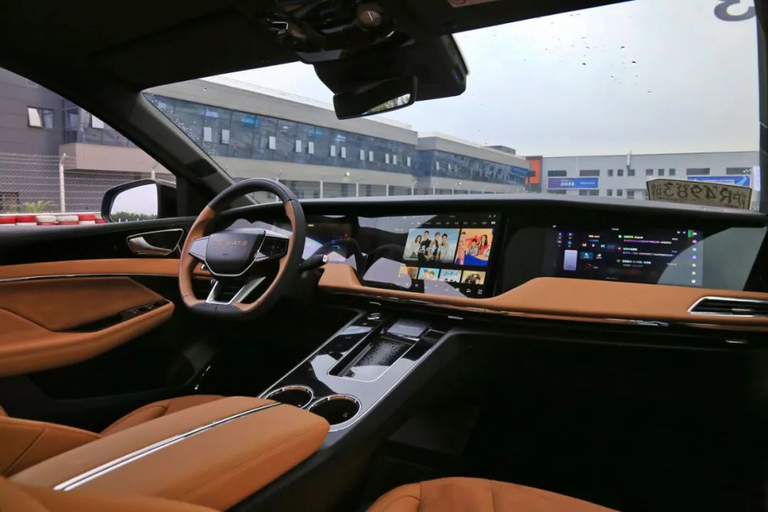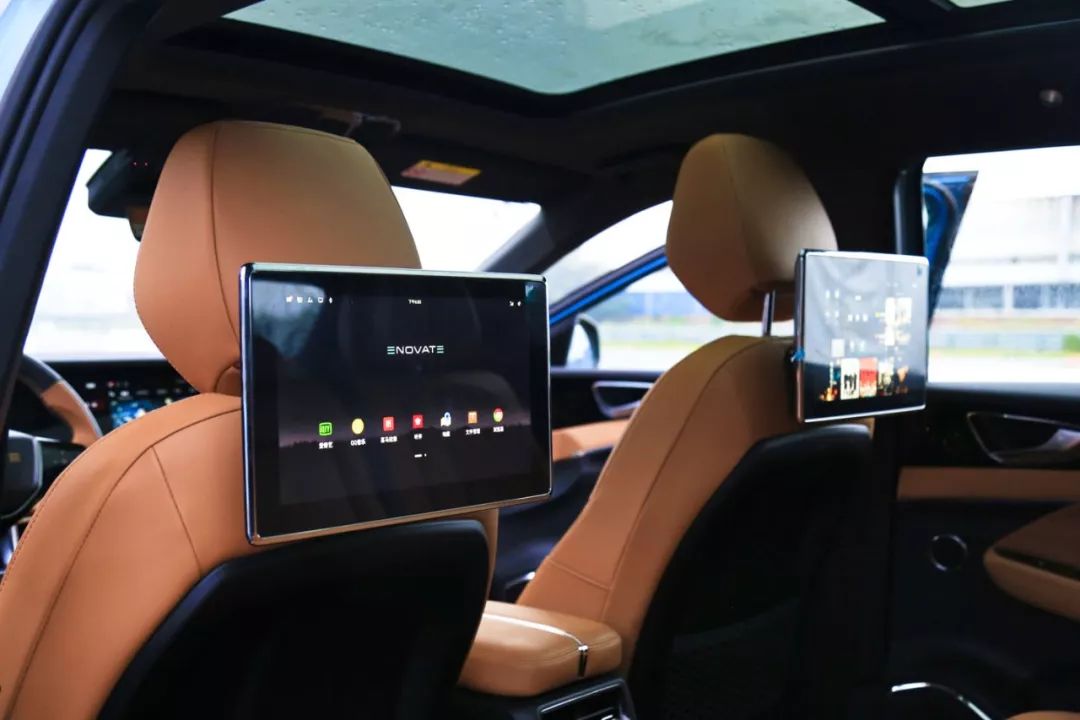 大胆激进的内饰设计是天际ME7的另外一个闪光点,前排3个大屏+后排2个大屏绝对能让你瞬间“高潮”。前排的3块屏幕是标配,后排的2块则需要选装。前排的3块屏幕设计虽然比较震撼,但是在白天强光下反光比较严重,官方表示后期会增加白天模式,可以减轻反光效果。