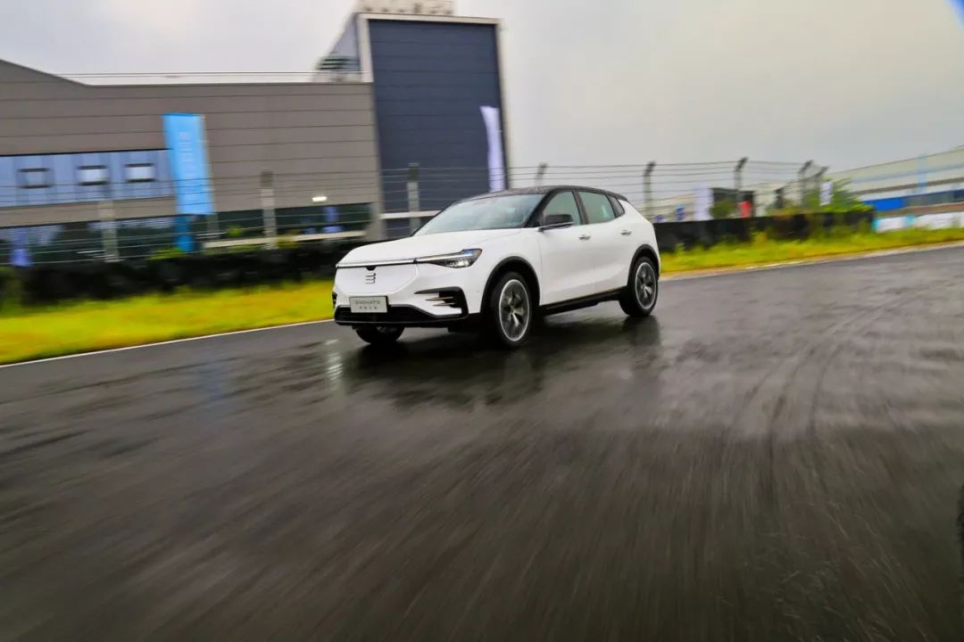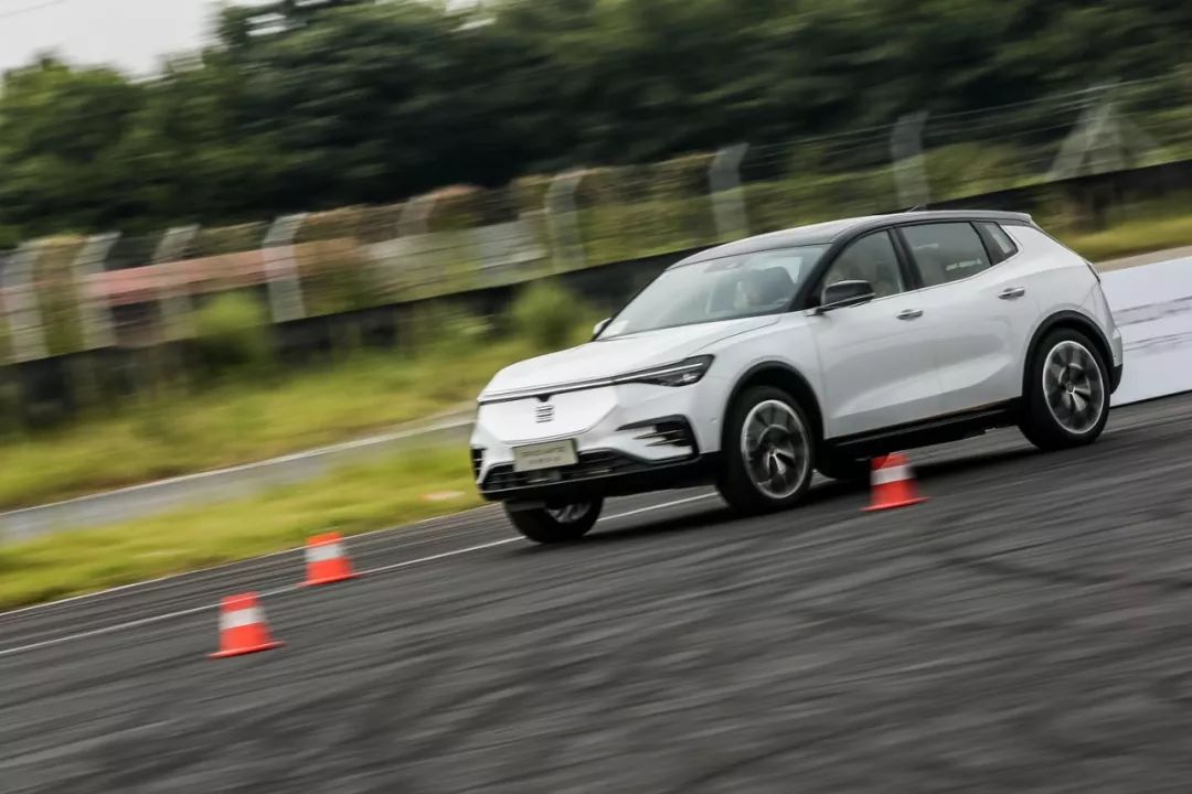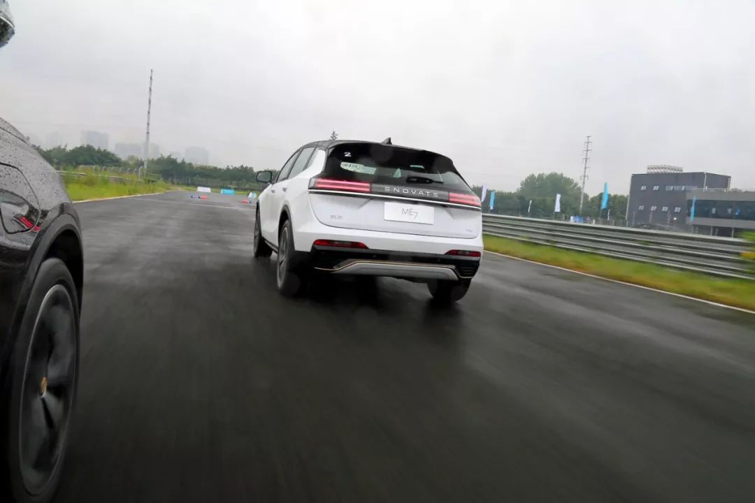 天际ME7只是前桥搭载了一台驱动电机,与蔚来ES6 (配置|询价)和广汽新能源Aion LX (配置|询价)等搭载前后双电机的车型相比,加速性能并非它的强项。场地里进行0-60km/h的加速体验,它确实有足够的推背感,但尚未达到性能电动车的那种失重的刺激感,官方0-100km/h的加速时间为8.5秒。