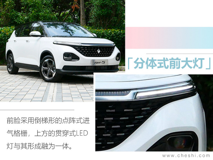 新宝骏RM-5是一款Crossover造型的MPV,除了具备MPV的实用性之外,还拥有轿车的比例姿态和SUV的运动感。车身尺寸整体比别克GL6大一点,但2750mm轴距略有不足。动力部分搭载与RS-5、RC-6相同的1.5T发动机,满足国六排放标准,传动系统匹配CVT变速箱。