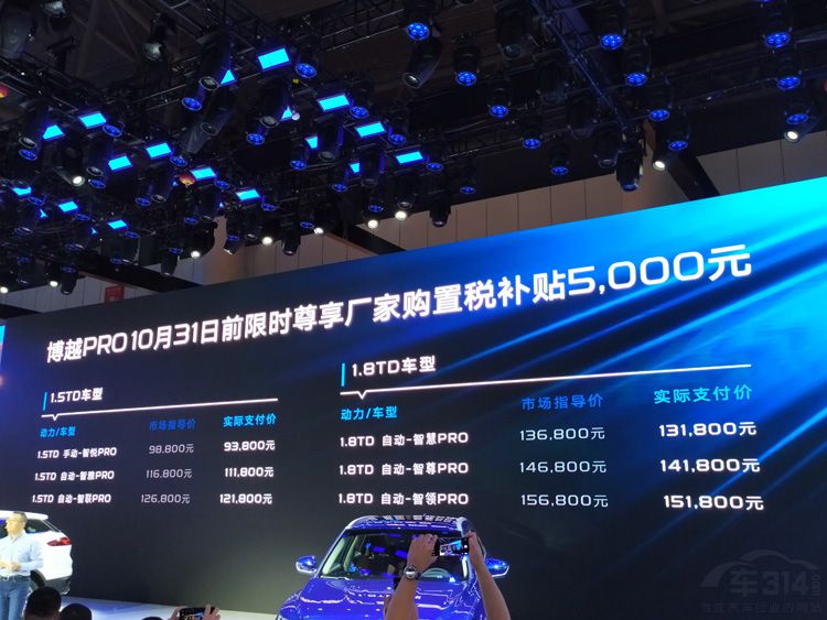 而9月5日开幕的2019成都车展期间,吉利正式上市的全新SUV车型——博越PRO,就是吉利博越 (配置|询价)的专业升级版。新车官方市场指导售价区间为9.88-15.68万元,10月31日前享受厂家优惠购置税5000元,相比博越在外观内饰、科技配置以及性能方面进行全面升级,定位更高端、更专业。此外,2020款博越一同上市,指导价下调1万元,性价比提升。