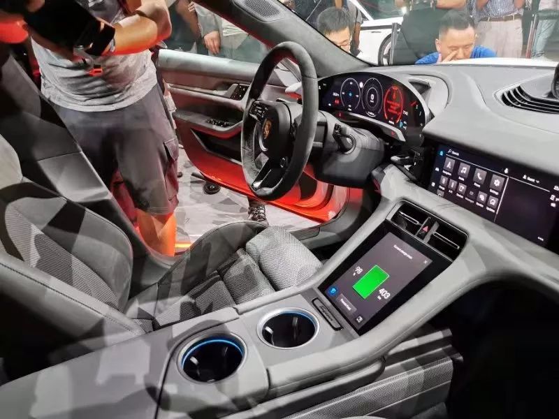 前面我也说了,Taycan首先是一台保时捷,再是一台电动车,因此它在豪华氛围的营造上也绝对不会含糊。与某些品牌塞一个大屏幕+语音助手就敢用“新世代汽车”“AI汽车”“智能汽车”来标榜自己不同,Taycan的内饰是真的花了心思去设计的。