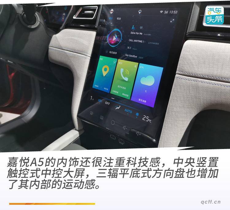 配置方面,嘉悦A5将提供一键启动、电子手刹、AUTOHOLD、语音控制、自动驻车、定速巡航等,从而满足当下消费者的用车需求。