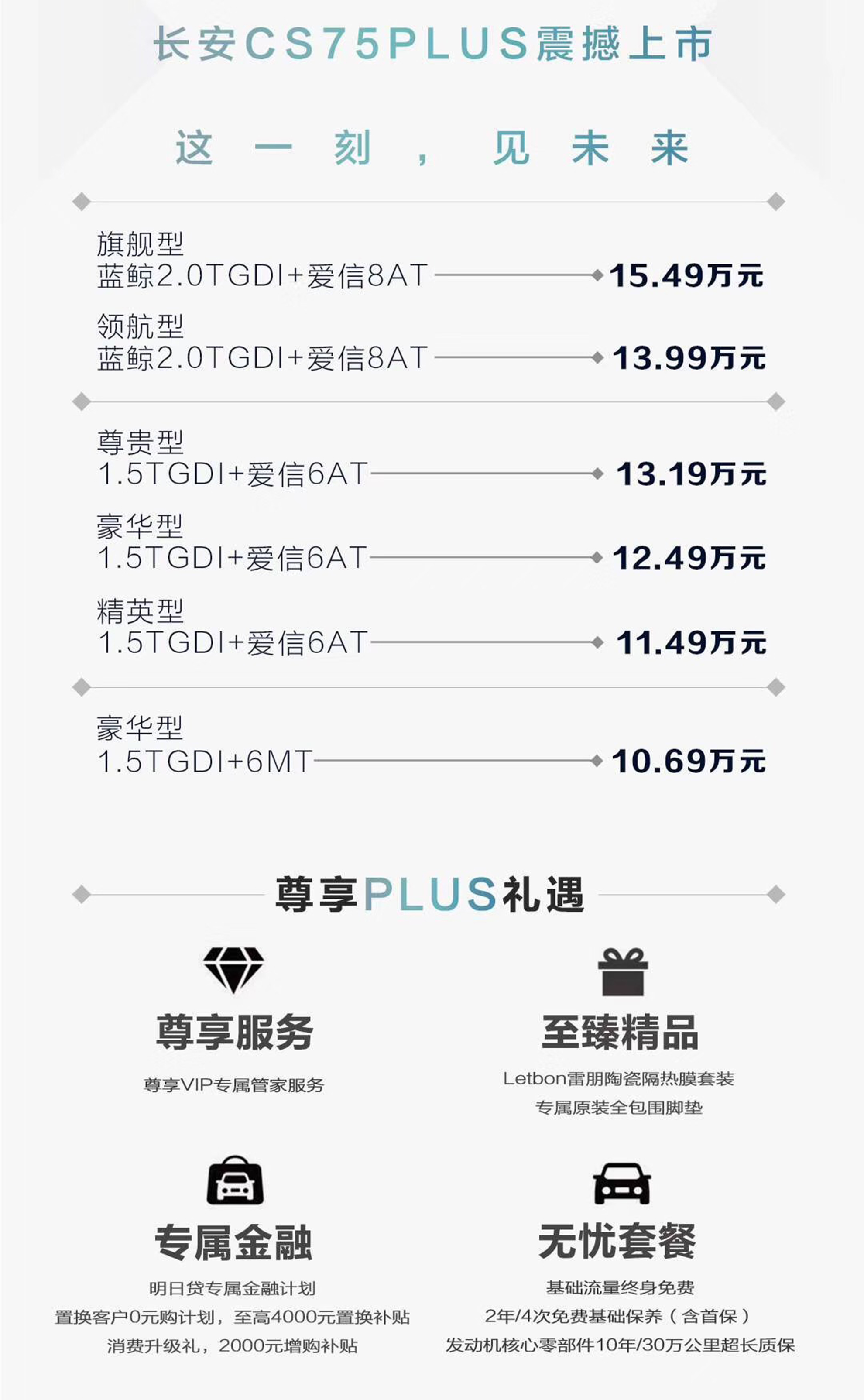 此外,厂家还推出了包含0元购车计划、基础流量终身免费等在内的四重“PLUS礼遇”。