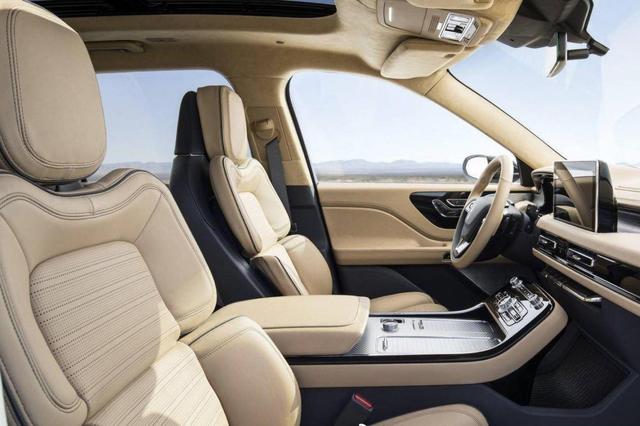 内饰部分,飞行家同样沿用了经典的家族风格,整体布局和大哥领航员相似。内饰采用了大量的平行线条,带来的视觉效果更加宽阔感,虽然看起来并不花哨,但是颜色的搭配和上乘的做工用料营造出了典型的美式豪华风格。反正在我看来,相比一线高华品牌BBA,林肯在豪华感营造方面,有过之而无不及。
