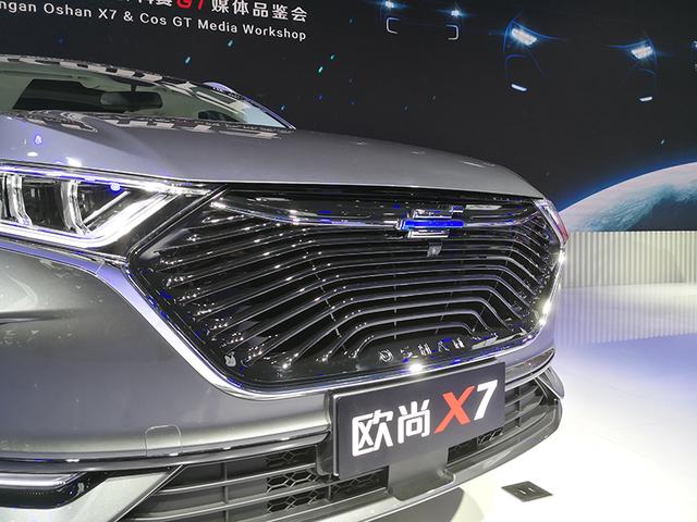 欧尚X7定位于紧凑型SUV,但是其长宽高已经达到了4705/1860/1720mm,轴距也有2780mm,与定位中型SUV的科赛已不遑多让了。其熏黑中网并非是常见的网格或平直线条,而是采用了类似羽翼纹理的线条,非常有辨识度。车尾则用一条贯穿式的镀铬饰条将两个尾灯连接起来。车尾底部还有带纹理的银色护板,彰显了其SUV身份。