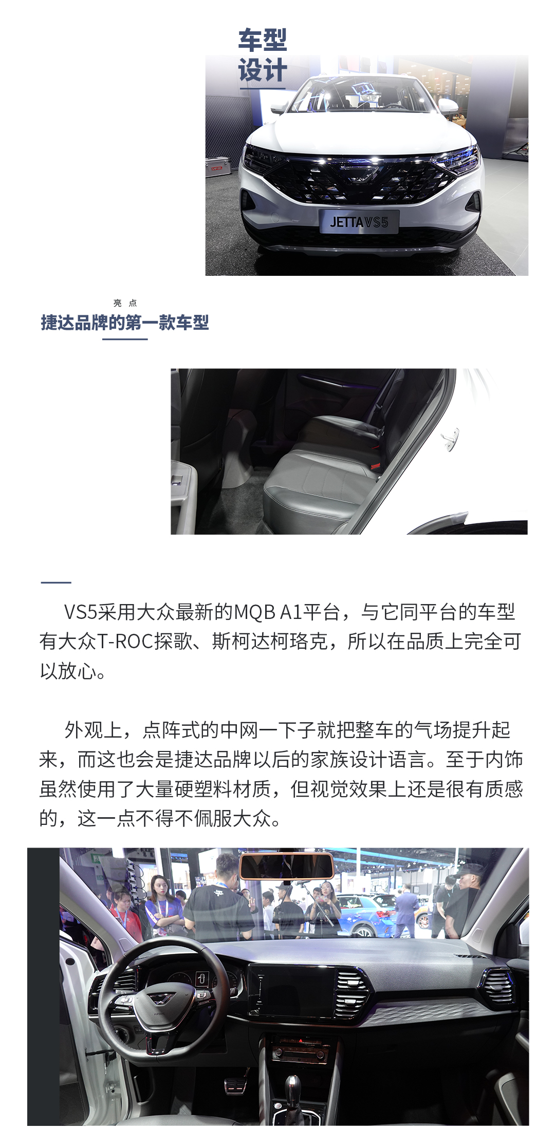 9月5日,在第二十二届成都国际汽车展览会上,一汽-大众捷达旗下的首款车型——VS5 (配置|询价)正式上市,新车全系搭载1.4T发动机,匹配MQ250手动变速箱或爱信手自一体变速箱,共有5款车型可选,售价区间为8.48-11.28万元。另外,在10月31日前注册成为会员,即可享受比指导价便宜3千元的会员抢鲜价。对于这款车型教授相信不少消费者已经期待了很久,所以教授本篇文章将会为大家分析,哪款车型更值得购买。