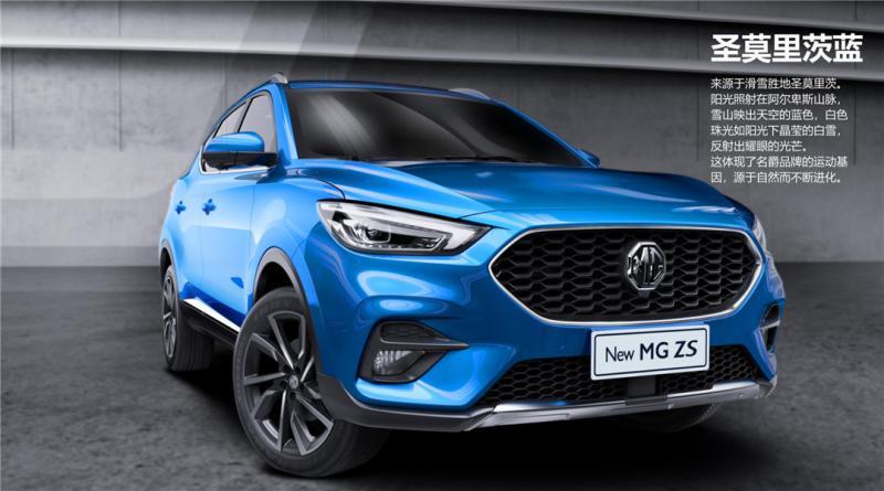 全新名爵ZS在外观方面有着大幅度的提升,提供了四种车身颜色,分别为圣莫里茨蓝、雪山白、急速红与电光橙。其中,圣莫里茨蓝是其主打颜色,相比现款车型的激光蓝要稍浅一些,更加有质感,也更加年轻化。全新名爵ZS还引入了全新Trophy黑骑士版,极具辨识度的独立大格栅采用了熏黑蜂窝状设计,外侧同样采用亮黑色装饰条,降低车头视觉中心,造型更加战斗。