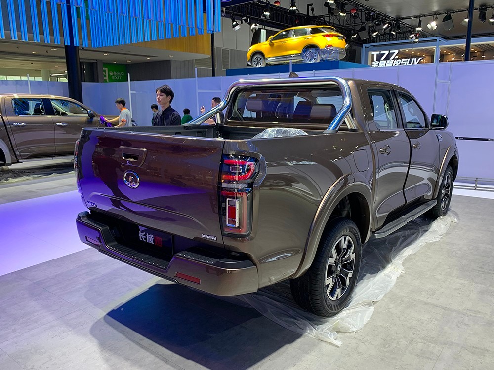 车尾部分,长城炮 (配置|询价)乘用版采用了传统的长城汽车LOGO,两侧尾灯采用竖向排列,搭配底部脚踏板、货箱拉手等元素,使新车具有一定辨识度。