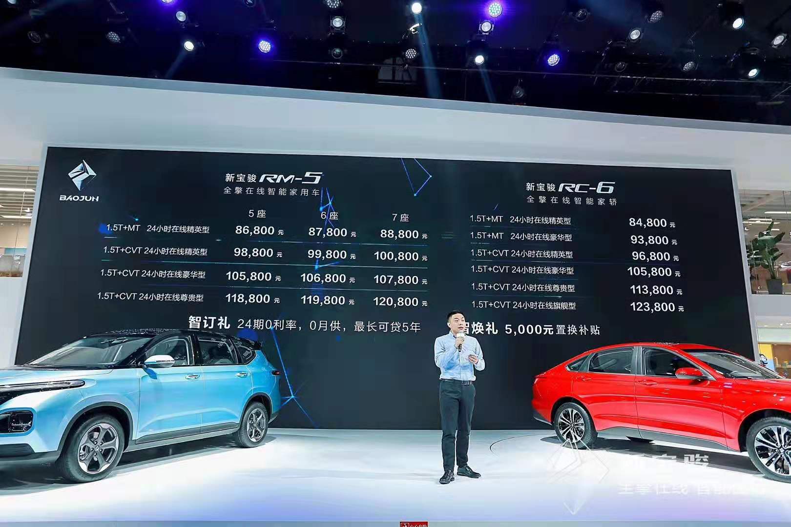 9月5日,2019成都车展上,新宝骏RM-5/RC-6正式上市。新宝骏RM-5共推出4款车型,售价为8.68万元起。另外,还有6/7座版本可选,售价在5座的基础上分别增加1000元和2000千元。新宝骏RC-6共推出6款车型,售价区间为8.48万-12.38万元。