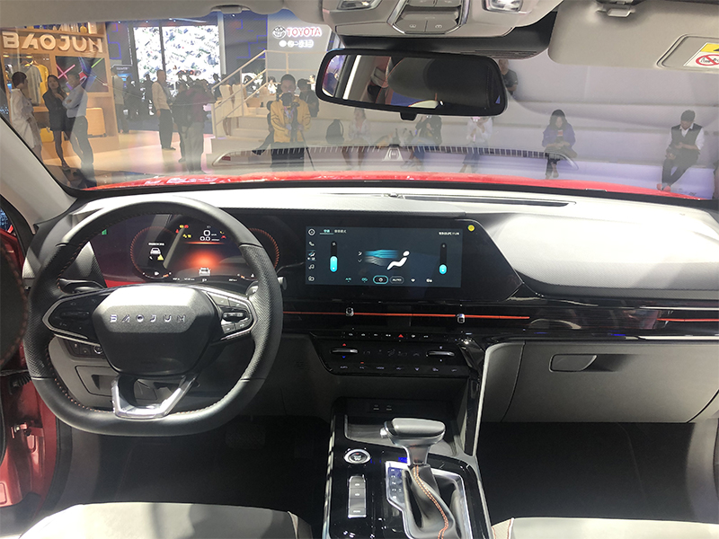 车内最引人注目的是采用了双12.3英寸的一体式大屏设计,全系标配新宝骏手机车联网,该套系统以手机算力与AI能力替代车机,将智能手机所有能力嵌入到汽车中,实现手机即车钥匙,可远程授权解锁。