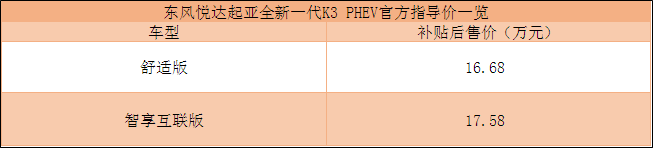9月5日,买车网2019成都车展前方报道小分队传来消息,东风悦达起亚全新一代K3插电混动正式上市。新车共推出2款车型,补贴后售价为16.68万-17.58万元。与此同时,购买新车可享受动力核心部件8年15万公里质保,2年0零率金融政策等。据悉,新车上市后将直接对标丰田旗下的卡罗拉 (配置|询价)双擎E+和雷凌 (配置|询价)双擎E+。