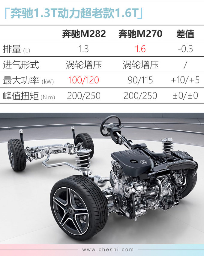 2.换搭M282系列1.3T发动机,动力比老款1.6T更强;