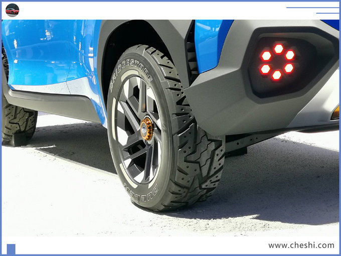 车侧下方隆起的轮眉和全地形轮胎,若能保留至量产车型中,或将会拥有较强的越野性能。车尾部分,新车配有由黑色元素装点的后保险杠,上方集成梅花烙样式灯组,与车头相呼应。面积较小的尾灯组,进一步拉高了尾部的视觉效果,将车身衬托的十分高大,从尾部也可直观地看到新车拥有较高的离地间隙。
