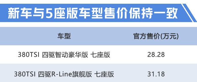 9月5日,上汽大众途观L (配置|询价)七座版正式上市,共推出2款配置车型,官方售价分别为28.28万元、31.18万元,与配置相同的5座版车型价格保持一致。新车外观、内饰均与现款5座版车型保持一致,搭载2.0T高功率发动机,主要变化则是增加了第三排座椅,进一步丰富消费者的购车需求。