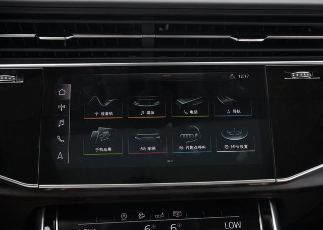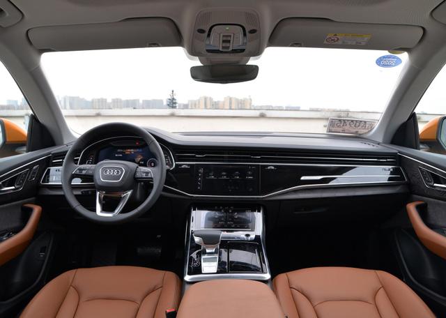 全新奥迪Q8内饰采用多屏幕式设计,12.3英寸全液晶仪表盘搭配上(10.1英寸)下(8.6英寸)两块中控触摸屏,搭载MMI触控响应操作系统,10.1英寸上区显示屏用于控制信息娱乐系统和导航系统,8.6英寸下区显示屏让驾驶员能够管理加热、通风、空调以及舒适功能和文字输入。用户可以通过多功能方向盘在12.3英寸高清显示屏的经典视图和导航视图的两种视图之间切换。
