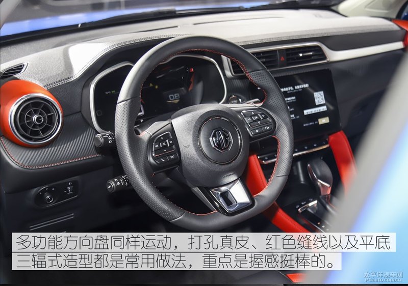 全新名爵ZS十分注重质感和科技感的呈现,同时也没有忘记对运动的追求。基于波普设计打造的“全沉浸式驾驶座舱”,偏向驾驶者的中控区域加强了运动氛围。同时哑光镀铬的加入增加高级感,而大量软质材料包裹做到了亲和力十足。还有高对比的大胆配色、软包碳纤维纹理、红色缝线更是被首次加入到内饰中,来唤醒全新名爵ZS的性能。