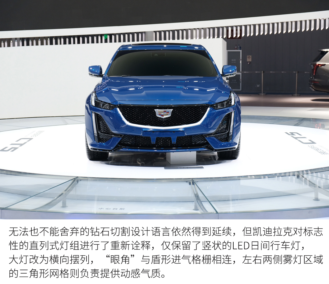 设置在前轮翼子板上的转向灯被取消了,外观其他方面上汽通用凯迪拉克的CT5与国外版本完全一致。