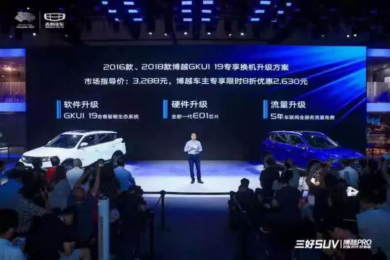 另一方面,吉利还针对老车主推出GKUI19专享换机升级方案,博越车主专享限时8折优惠,且升级后享受5年车联网免费流量。