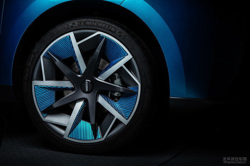 外后视镜与门把手均采用了隐藏式设计,在呈现未来感的同时可获得更优化的空气动力性能。造型科幻的五辐式轮圈采用与车身风格保持一致的蓝色,并加以黑银两色修饰,大大提升了车身的立体感和层次感,设计更加年轻化有冲击力。尾灯采用LED光源,造型与前脸相互呼应。