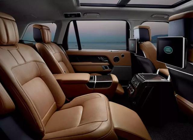 揽胜SVA巅峰创世加长版沿用了揽胜家族的内饰造型设计,高端奢华是它的主要格调,半苯胺打孔真皮座椅“仅是”标配,嫌不够舒服还可加钱选装更为豪华舒适的Poltrona Frau高端真皮座椅。即使它有着宽厚的车身,但它像是故意挥霍空间般地采用了四座设计。后排乘客可享有独立的腿部支撑、大尺寸后排显示屏、小桌板、集成控制按钮的中央扶手和座椅按摩等功能。车内饰件方面,金属拉丝加上实木的装饰为揽胜SVA巅峰创世加长版带来极致奢华体验。