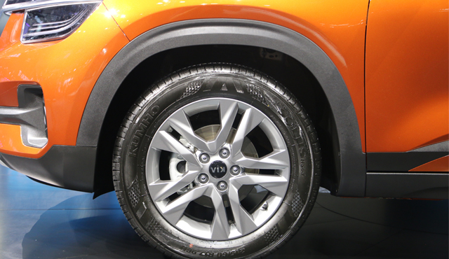 下方银色的轮毂采用双五辐的设计,轮胎的规格为215/60 R17,轮胎品牌为锦湖,这个尺寸的轮胎,配在这台硬朗的小SUV上面,显得比较协调。