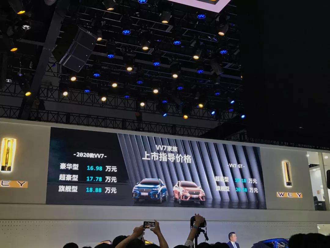 在2019年成都车展上,VV7家族完成全球首秀。其中,2020款VV7正式上市,提供三款车型,售价区间为16.98万元至18.88万元;VV7 GT 同步上市,提供两款车型,售价区间为19.18万元至20.58万元。VV7、VV7 GT以及两款车型对应的插电混动版本VV7 PHEV和VV7 GT PHEV将共同组成实力更强大的VV7家族,PHEV车型或会在下个月上市。