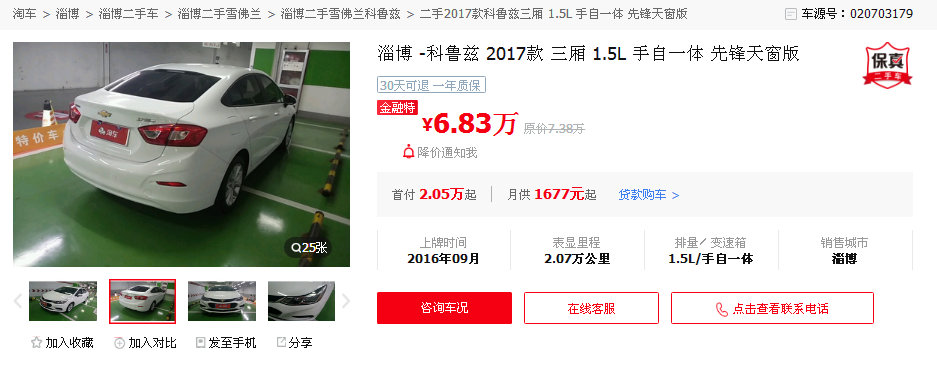 雪佛兰,诞生于1911年,拥有108年的历史。是一个极富年轻化、运动精神和创造力的全球汽车品牌。雪佛兰旗下以科鲁兹为首的入门车型,凭借其可靠的性能以及较好的车辆外观,在我国市场中的表现还是可圈可点的。今天淘淘要带给大家的就是科鲁兹 2017款 三厢 1.5L 手自一体 先锋天窗版,上牌于2016年9月,仅行驶了2.07万公里。