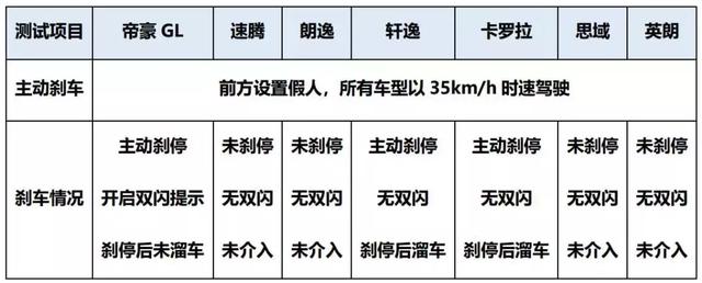 主动刹车测试:帝豪GL最稳