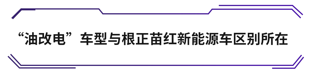 那么问题来,如何鉴别一款电动车是“油改电”抑或“纯”电动车?两者的本质区别在于:根正苗红电动车是基于全新平台正向开发的产物;而“油改电”是在燃油车基础上强换电驱系统,产品容易出现部分失衡的现象。
