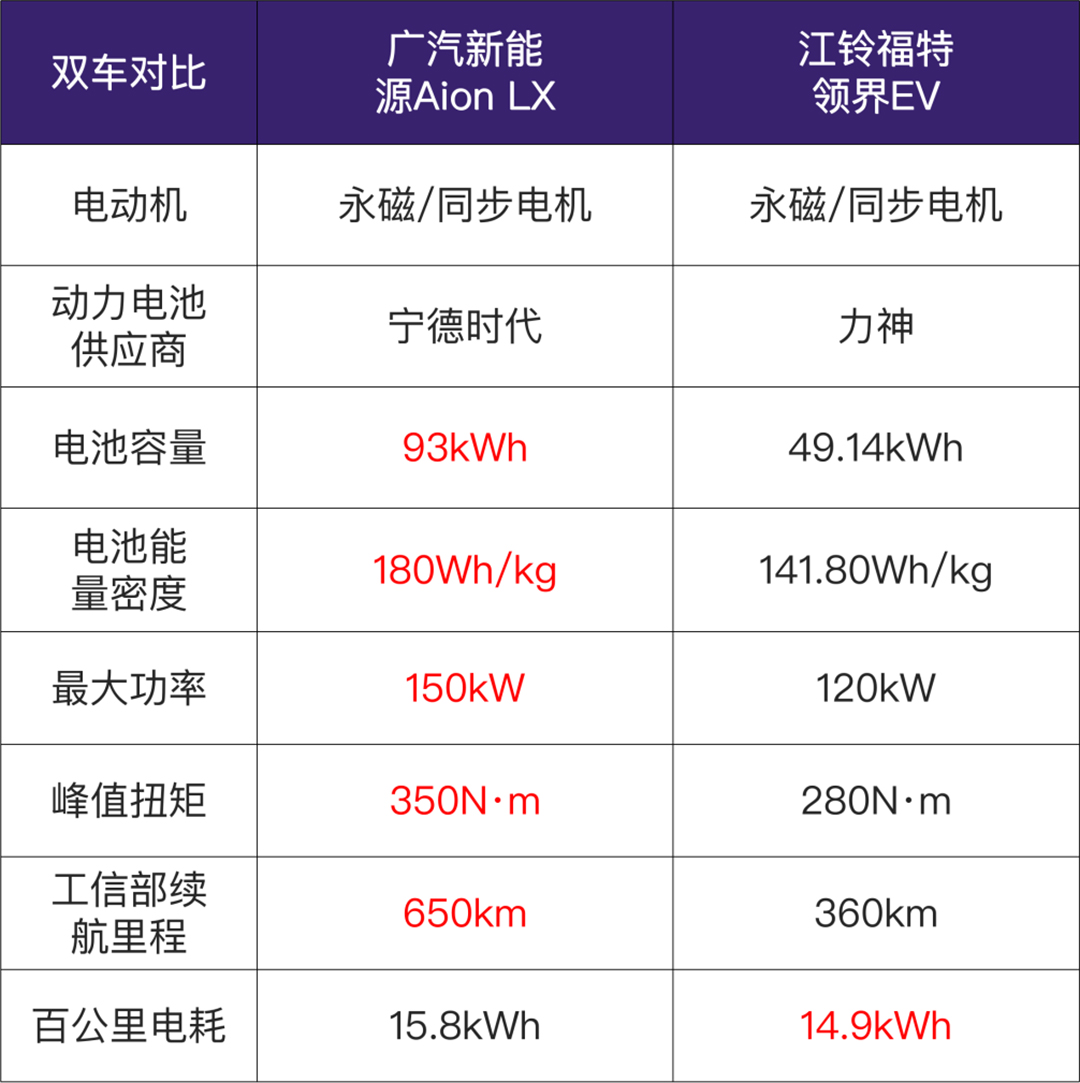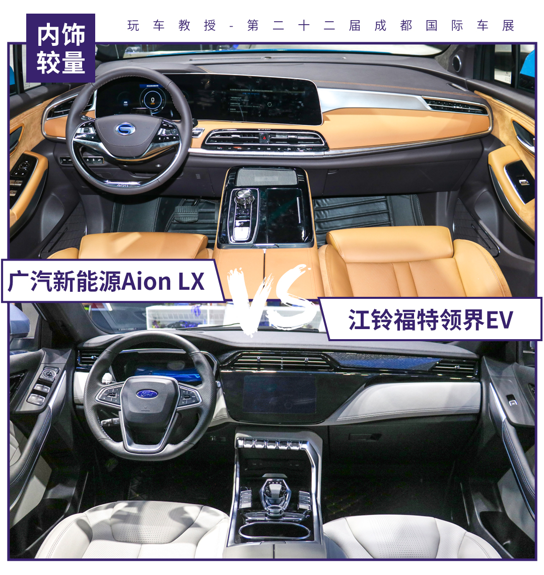 多说无益,举例说明,教授就以此次成都车展比较热门且比较有代表性的广汽传祺Aion LX (配置|询价)与福特领界EV两款车型为例进行说明。