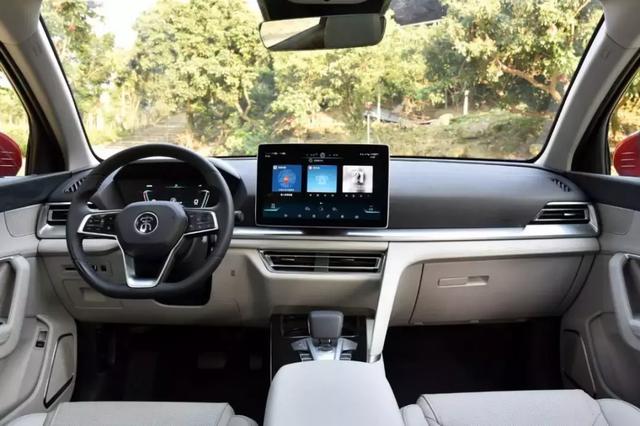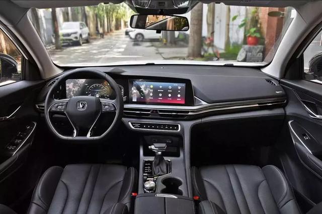 内饰方面,中控台采用偏主驾驶位的非对称设计,内饰用料和造工突显高级感,中控台下部和门板上有大量的皮质包裹。因为简约设计风格效果,中控12.3英寸的显示屏(2.0T为双12.3英寸屏幕)非常突出。事实上,CS75 PLUS有很多越级配置,就连大灯开关也转为触摸式。