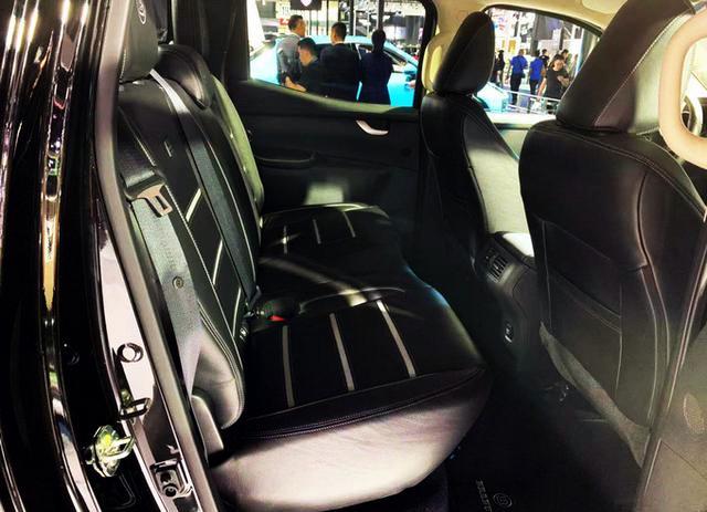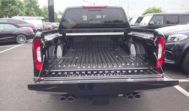 车身侧面,巴博斯300X是标准的皮卡身材,虽然线条较为圆润,但并不缺乏硬汉气概,尤其是全新的多幅式运动轮毂,使其看起来十分运动。车尾的造型棱角分明,后方挡板、尾杠等都进行了个性化的定制,竖直的尾灯组中配以LED灯带,点亮后效果出色,很显档次,而双边共四出的排气布局也为其增色不少。