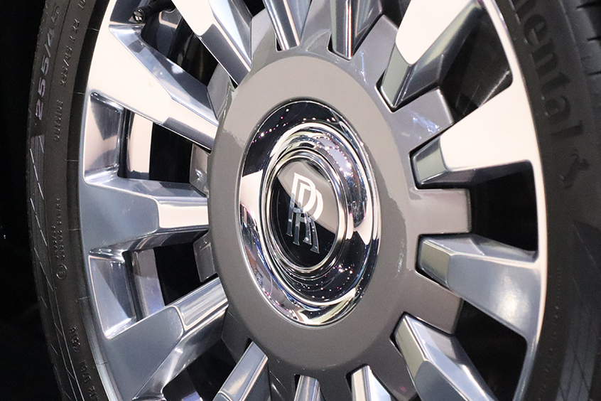 加长版的幻影拥有更大的车身尺寸,所以22英寸的超大轮圈直径是保证最佳车侧视觉比例的最佳方案。综合轮圈表面的镀铬处理和轮圈直径便可以看出,这辆劳斯莱斯幻影加长版的轮圈对整车起着重要的作用。