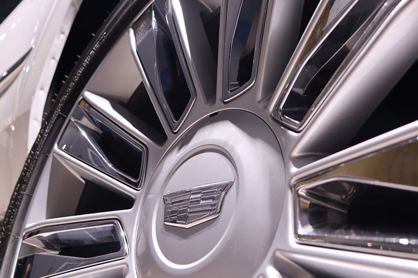 凯迪拉克凯雷德的轮圈采用多辐式双条设计,辐条外的轮圈为银色烤漆喷涂,辐条中央为镂空镀铬填充,镂空镀铬的曲面会使每一根辐条都呈现不同的光线,比整体镀铬涂装更有新意,同时还可降低后期轮圈修复的成本。