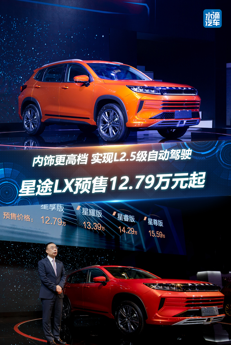 9月5日,EXEED星途旗下紧凑级SUV车型——LX (配置|询价)于成都车展全球首发并开启预售,此次首发的EXEED星途LX共有四款车型,预售价格分别为星享版12.79万元、星耀版13.39万元、星睿版14.29万元、星尊版15.59万元。
