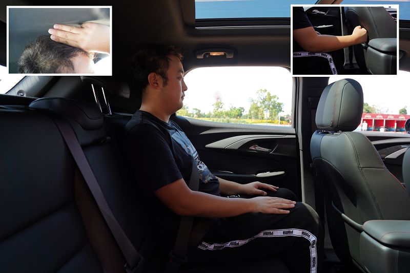 本人身高175cm,体重85公斤。前排座椅调整为最下位置,头部空间有1拳4指的距离;来到后排,在前排座椅保持不变的情况下,腿部空间有不到半臂的距离,头部空间有3指的距离。