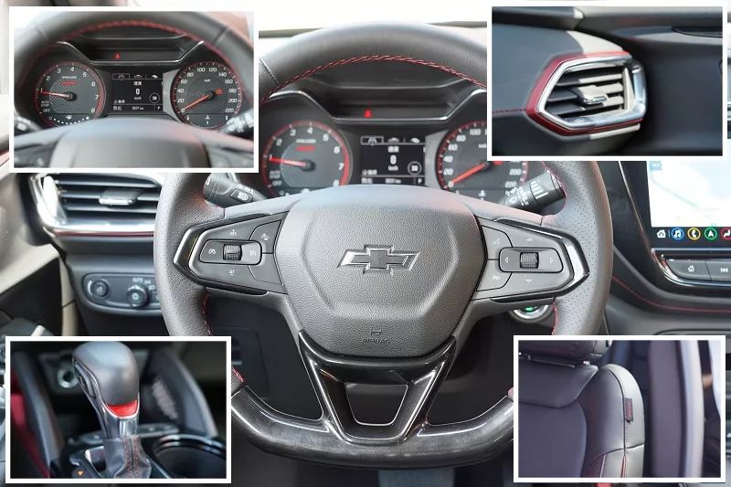 进入车内,创界RS的内饰既精致又充满了力量感,红黑色的缝线以及饰板上的纹理图案,更是突显其个性十足。传承了雪佛兰家族经典飞翼式双座舱设计,利用多条水平线条勾勒出了层次分明的感觉,中控台面与门板多处运用了大量做工考究的软性材质包覆,有效的带来了精致的触感和舒适的座舱氛围。
