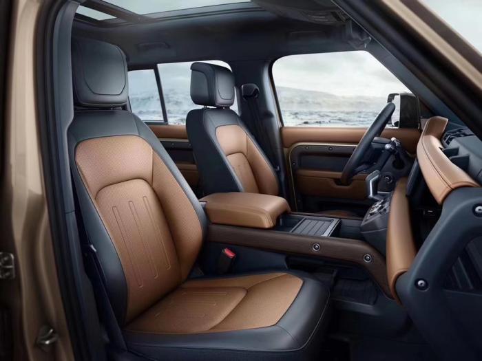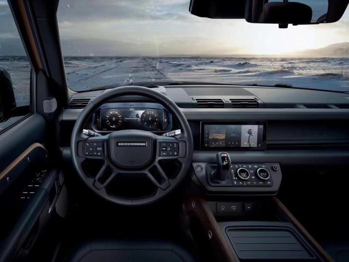 全新卫士的内饰设计变得不再简陋,中控台使用了涂层镁合金材质,进一步提升了内饰的耐用性。新车使用了全新的四辐式方向盘、12.3英寸全液晶仪表、10英寸中控屏幕,空调旋钮带有液晶显示屏,电子挡把位于中控屏下方,这都是老款车型没有的设计。