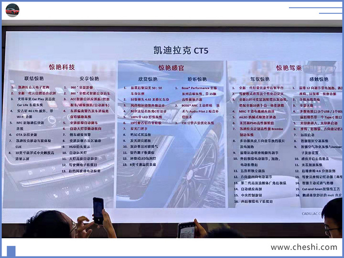 凯迪拉克全新中型轿车CT5 (配置|询价)已经在9月5日开幕的成都车展上首发亮相,将于今年第四季度正式上市。近日网上车市获得一组CT5的内饰照片以及主要配置信息,新车内饰延续了海外版车型设计,配有BOSE主动降噪、引擎声浪优化、主动电磁悬挂等主要配置。价格方面,参考现款ATS-L尺寸和售价(27.38-42.88万元),新车的起售价预计在29万元左右。