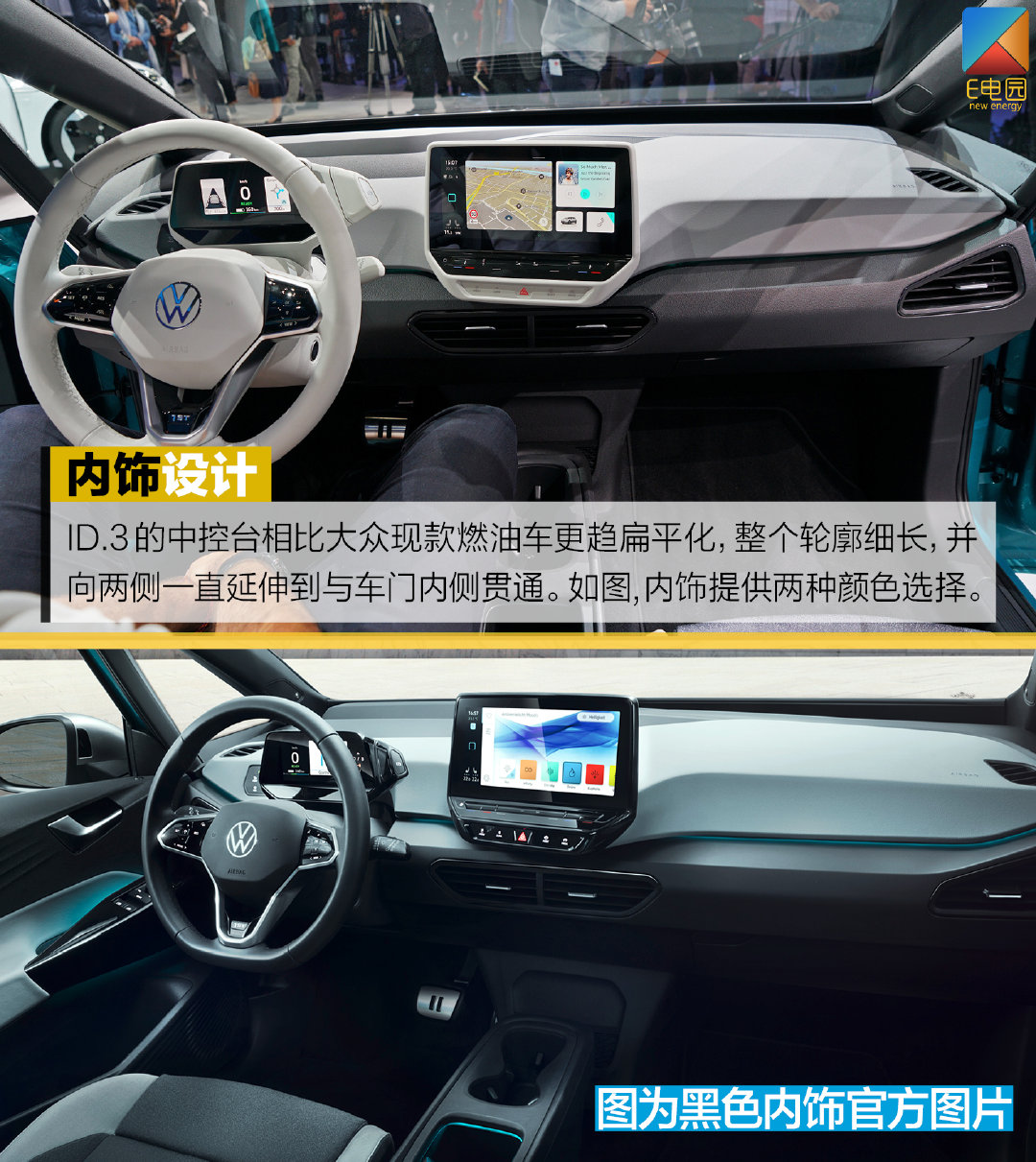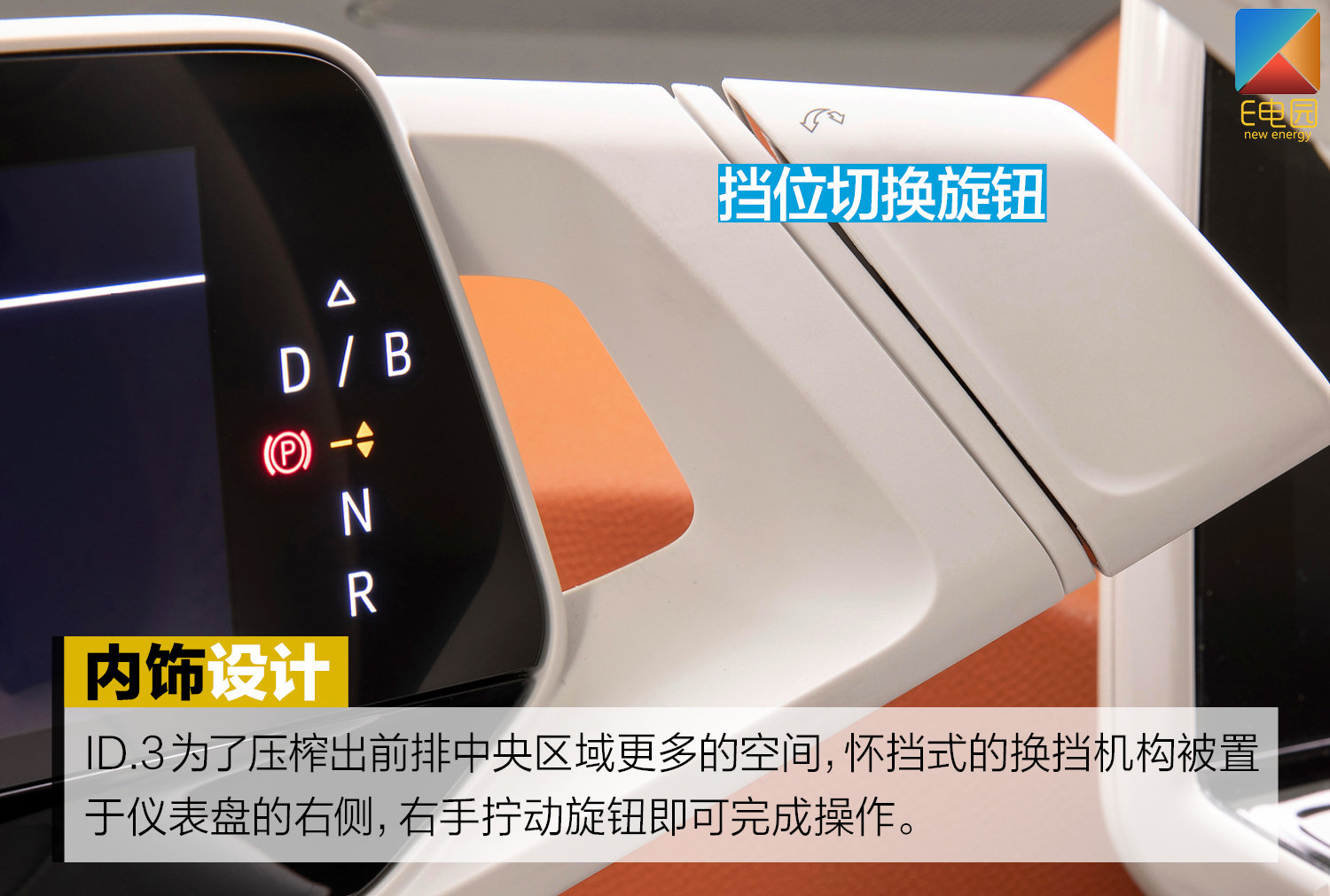 细节方面,ID.3为了压榨出更多的空间,怀挡式的换挡机构被置于仪表盘的右侧,右手拧动旋钮即可完成操作。另外据悉,ID.3车内在保证质感与触感的基础上,将使用更多的环保材料,如官方图片中平底方向盘的表面覆盖、中控台的包裹材质等。