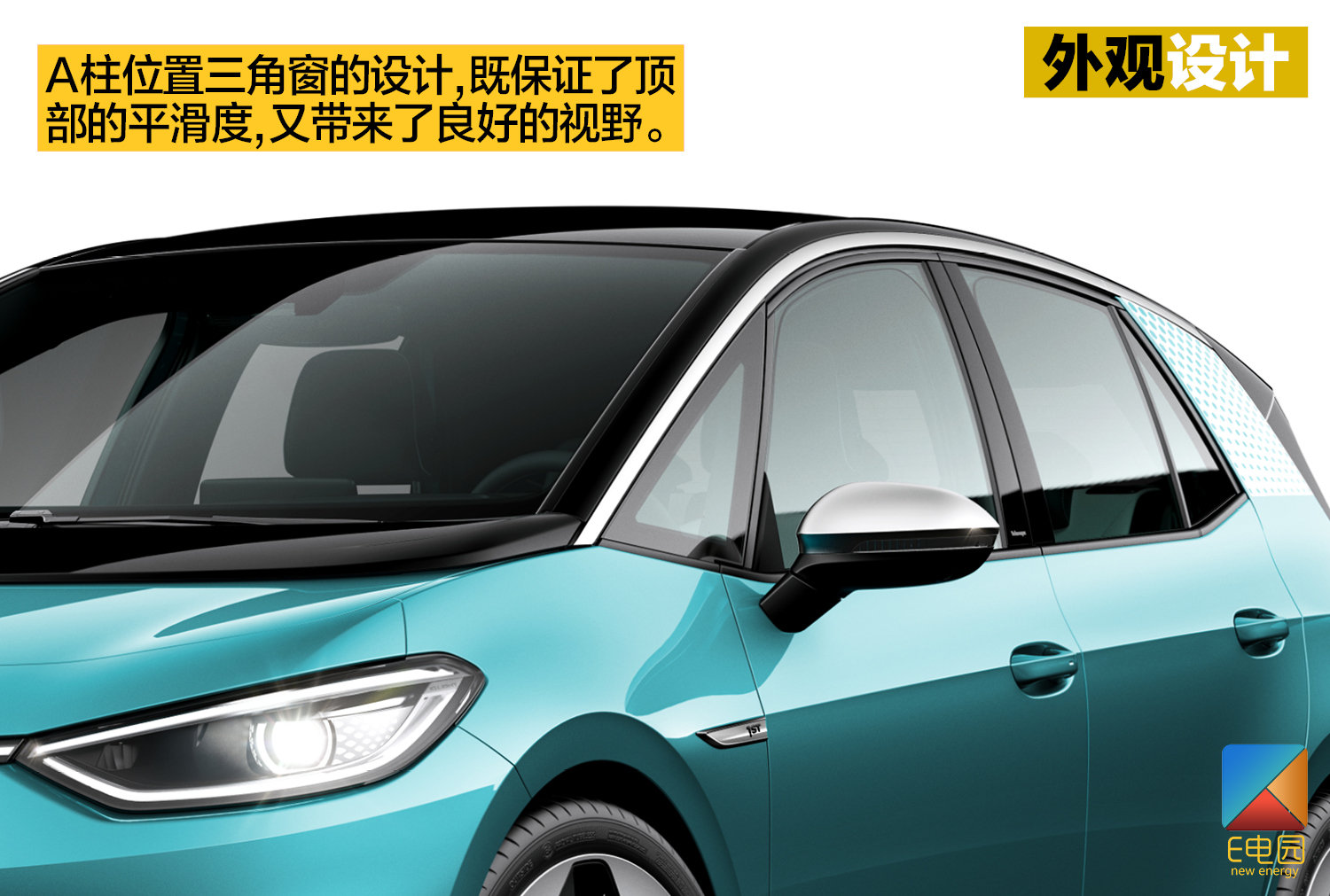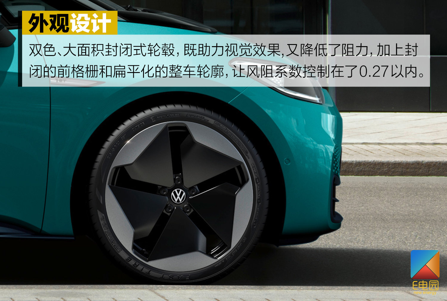 服务于外观整体效果的细节之中,ID.3也带来了不少亮点。首先,最直观的双色、大面积封闭式轮毂,既有助力视觉效果的用途,又有提升空气动力学的职能,加上封闭的前格栅以及整车扁平化轮廓,最终将风阻系数定格在了0.27以内。