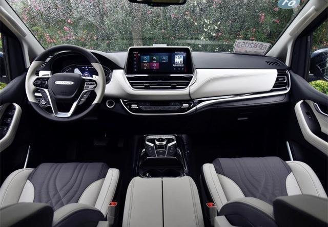 其次内饰方面,大通G20整体设计成熟稳重,中控台线条看起来舒展而简洁,双色的主色调在保持豪华感的同时不会过于浮夸,充满时尚气息。此外,悬浮式中控屏、液晶仪表和旋钮式换挡机构,营造出了不错的科技感,整个内饰的氛围再同级别中有着不错的优势。