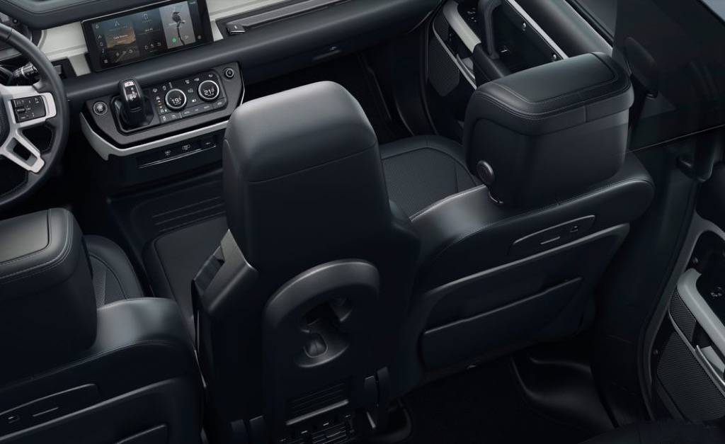 全新卫士110版本车型提供5座或7座车型可选,其中第二排座椅支持4:2:4比例放倒,后备厢的常规容积为1075L,第二排座椅放倒后可增大至2380L。