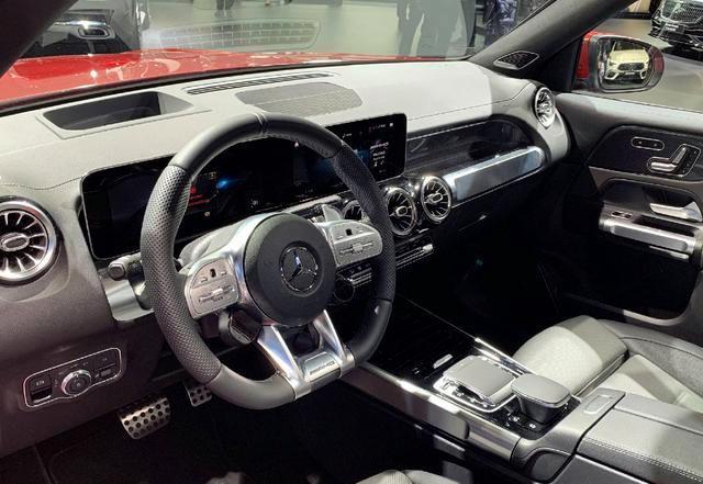 其次内饰方面,奔驰GLB 35 AMG同样沿用了奔驰新一代家族式设计风格,标志性的双联屏在GLB上也得以应用,搭配圆形空调出风口,营造出十分年轻时尚的运动氛围。同时,新车仪表盘提供AMG专属的经典、运动、超级运动主题,并且在方向盘等位置配备了专属的AMG标识。当然,新车最大的亮点是,后排可选择7座布局。