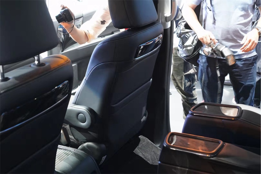 尺寸方面,混动车的长度达到4950毫米,宽1846毫米,高1719毫米,轴距2903毫米,可见混动车的长度增加了,让车身呈现出的修长感更加明显。第二排采用了两个独立的头等舱式座椅,除了支持前后调节外,横向也可以进行调节。对于它前后调节后的腿部空间表现,如果在第二排座椅挪到最前端的时候,我们此时还可以用常用的拳头来进行比划。