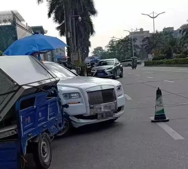 近日,在广东广州,发生了一起交通事故——一辆三轮车是在逆行时撞上了正常行驶的劳斯莱斯,从现场视频来看,事故造成劳斯莱斯的车前杠受损。