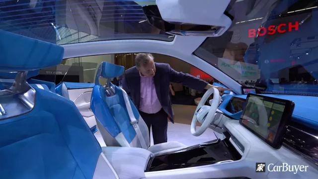 “整体的中控设计是我喜欢的风格,有很多汽车或自行车的圆形元素,很有未来的风格。我喜欢大的中控屏,中央扶手部分看起来也是触摸控制,仪表盘是数据显示的,我可以在中控屏看到供车主使用的应用图标,例如很重要的聊天工具Facebook”。