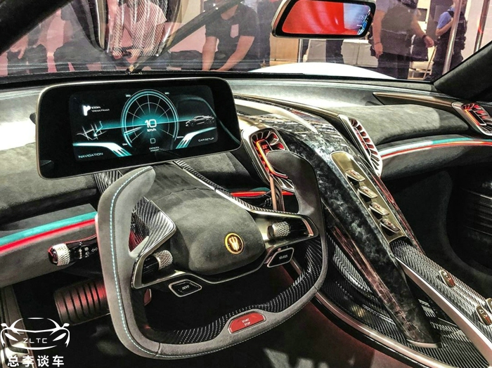 红旗S9的碳纤维随处可见,碳纤维轮毂,碳纤维尾翼,碳纤维引擎盖,碳纤维中控和方向盘等,车门为鸥翼门设计,车标也经过重新设计,从头到尾一条红线,这个车标比先前的要好,因为立标会对行人造成二次伤害,很明显S9的车标设计代表未来。据说红旗S9设计招标的时候必须有布加迪,帕加尼,柯尼塞格的设计经验。