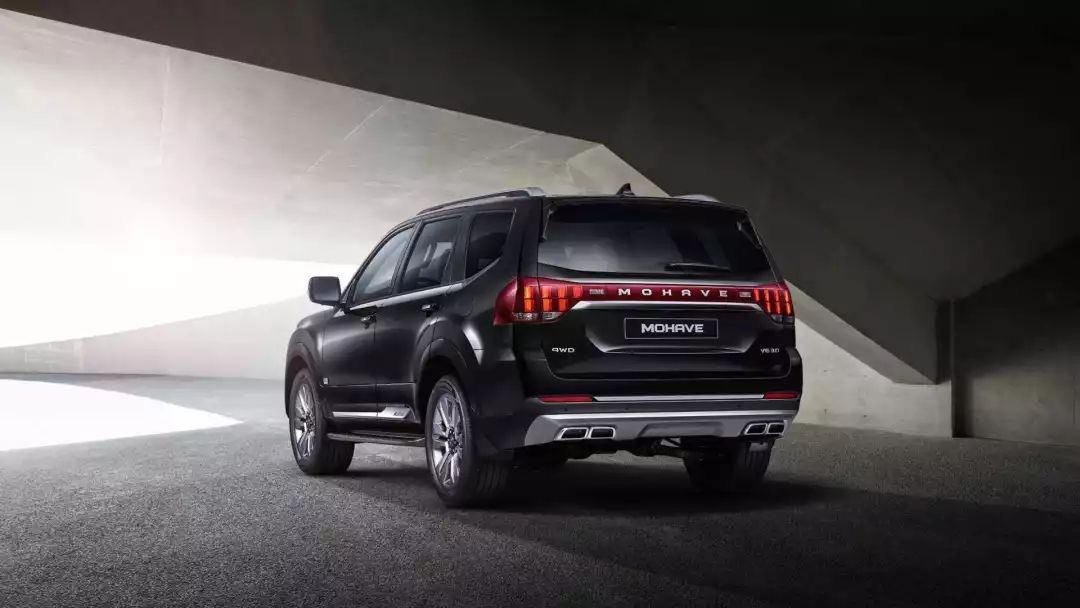 在车尾部分,新霸锐的变化也不小,有着与前脸呼应的LED尾灯组,中间很自信地加入了MOHAVE的标识,加上后包围采用的银色底板和双边共四出的排气装饰,同样体现出了这款车的硬汉风格。贯穿式的尾灯,现在很多新车都会用,就看能不能有自己的特色,新霸锐将自己的英文名字字母融入尾灯设计中,很大胆,实际看起来的效果也是不错的。